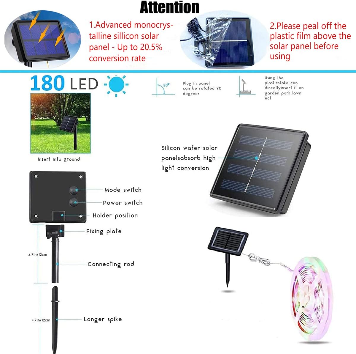 Amazon Com Ez Solar Powered String Led Lights Upgraded 90pcs Led Wire Lights Outdoor Waterproof 10ft 8 Lighting Modes Ideal For Decoration Thanksgiving Garden Lawn Patio Party Rgb Warm Tools Home Improvement